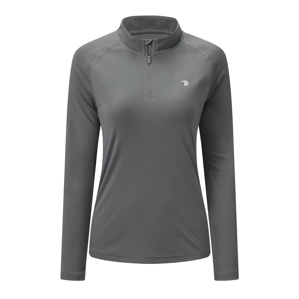 ☀️ BASUDAM Women’s UPF 50+ Long Sleeve Workout Shirt – Quick-Dry Quarter Zip Pullover Athletic Top (Dark Grey, L)